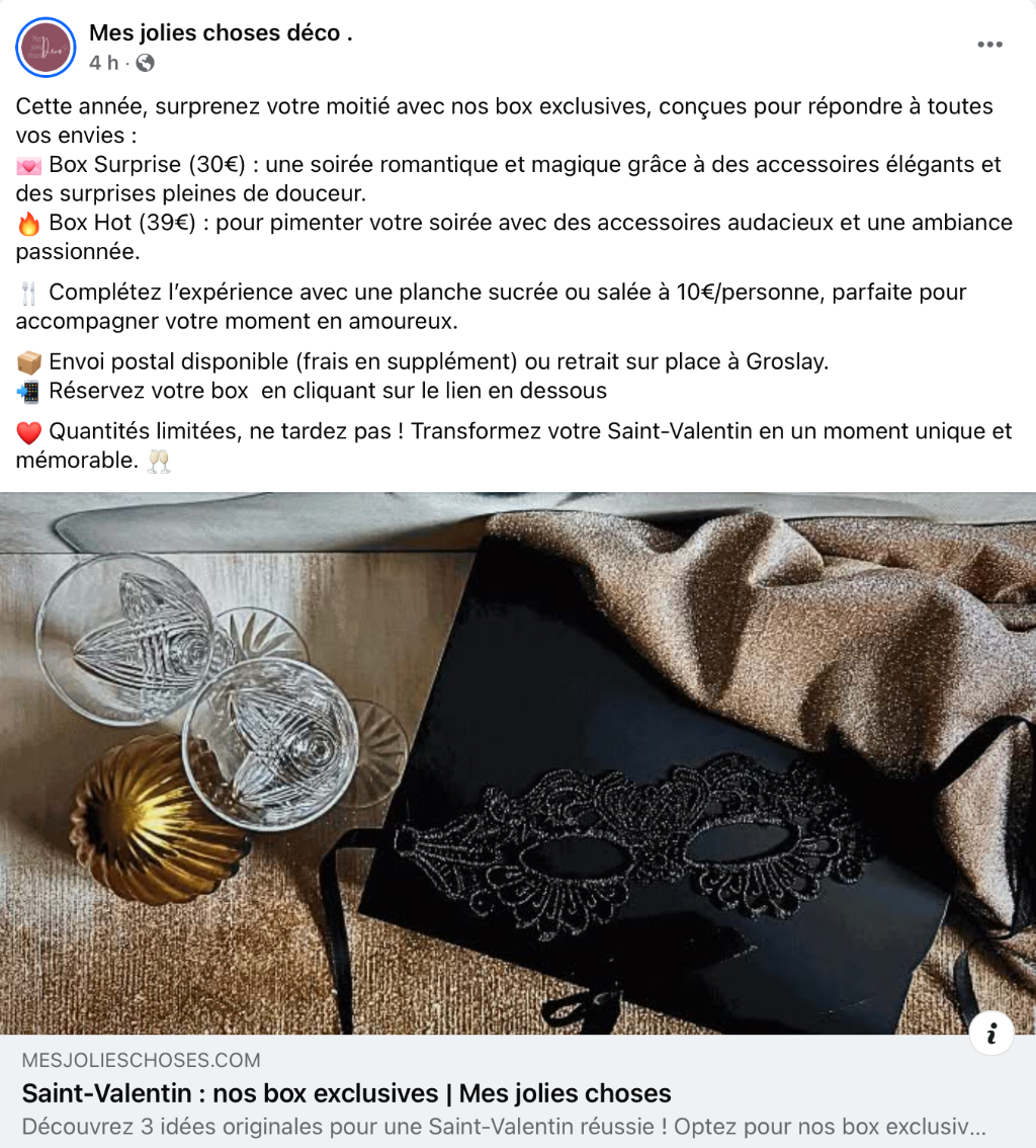 L’équipe de Zebrane a accompagné Mes Jolies Choses dans la conception et la réalisation d’une campagne de communication parfaitement alignée avec les valeurs de leur marque. L’objectif ? Créer un véritable engouement autour de leur box spéciale Saint-Valentin, un cadeau unique pour les amoureux à la recherche de douceur et d’originalité.