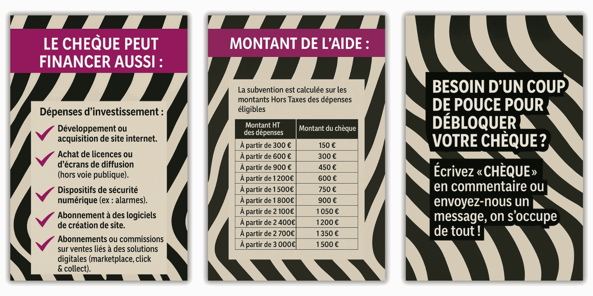 📲 Écrivez “CHÈQUE” en commentaire ou contactez-nous, on s’occupe de tout.